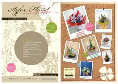 Azfarflorist was established since 1998, Our shoplocated in kpg baru. We have wide range of products from weddings, festives to personal needs, deliveries are provided (term and condition apply). Tell us what you need, we will do the arrangement for you.